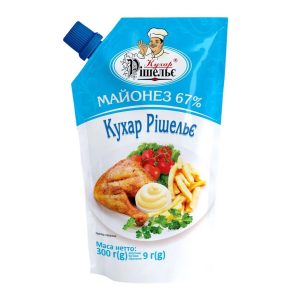 Майонез Кухар Рішельє имеет классическую жирность и нежную текстуру. Благодаря изысканному вкусу с лёгкими нотками горчицы и уксуса он отлично