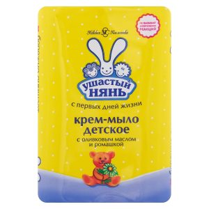 Детское крем-мыло «Ушастый нянь» с оливковым маслом и ромашкой бережно очищает и увлажняет кожу малыша, не нарушая её естественный защитный