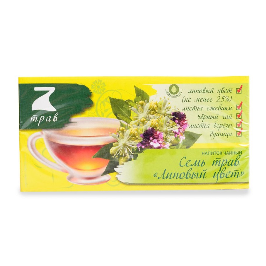 Чай травяной «7 Трав» Липовый цвет — это ароматный и мягкий напиток на основе липового цвета, известного своими успокаивающими и потогонными свойствами. Идеально подходит для вечернего чаепития и в период простуд, способствует расслаблению, укреплению иммунитета и улучшению самочувствия. Упакован в удобные порционные пакетики, которые легко заваривать.