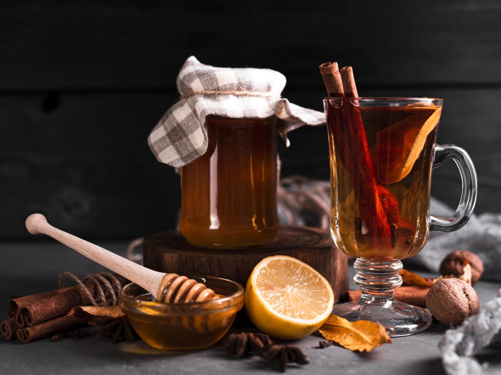 1. Довести воду до кипения, добавить специи и мёд.